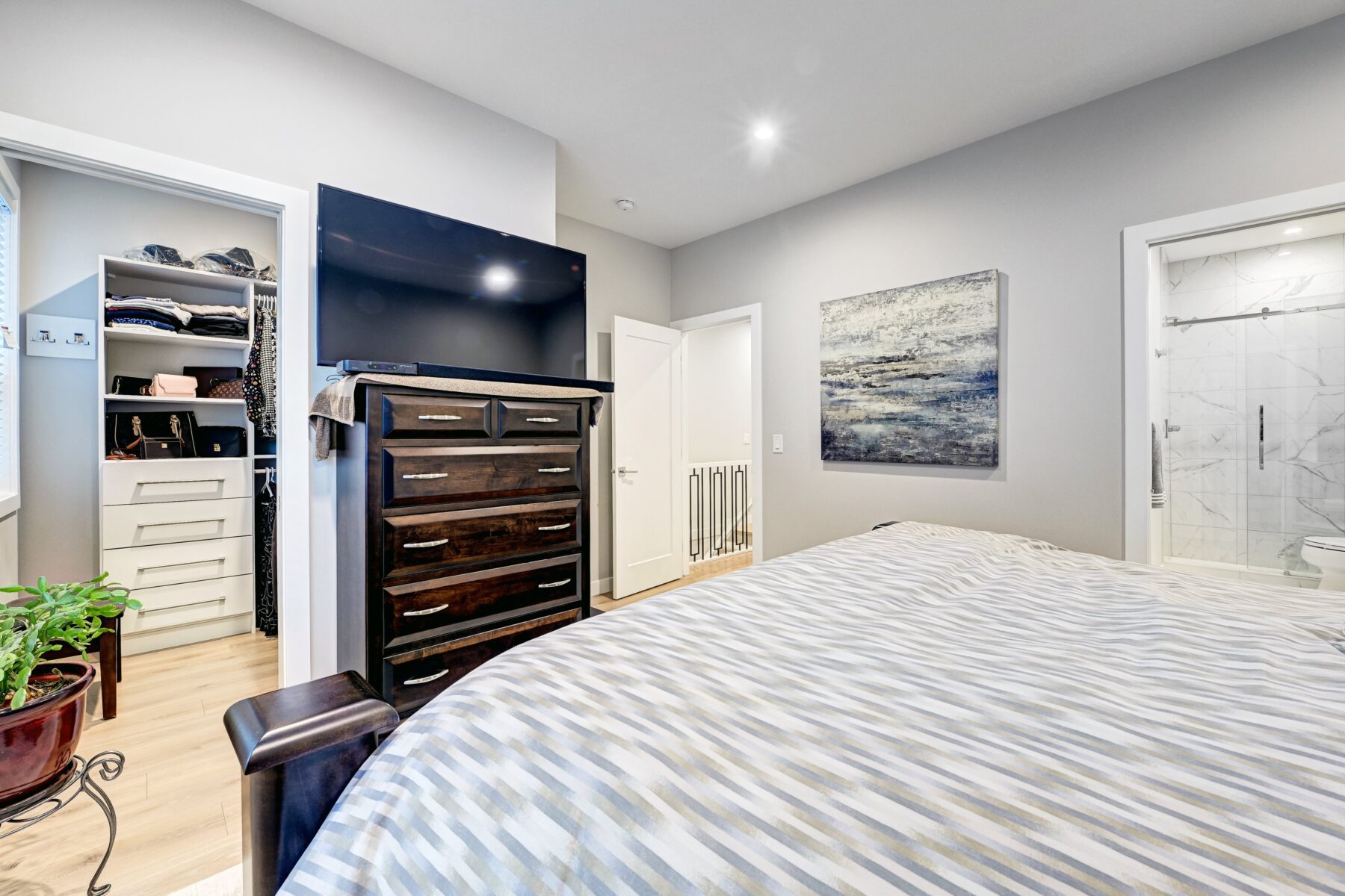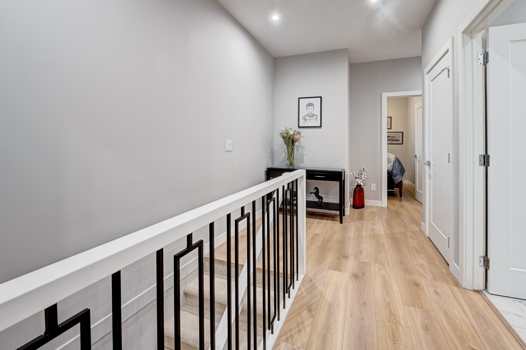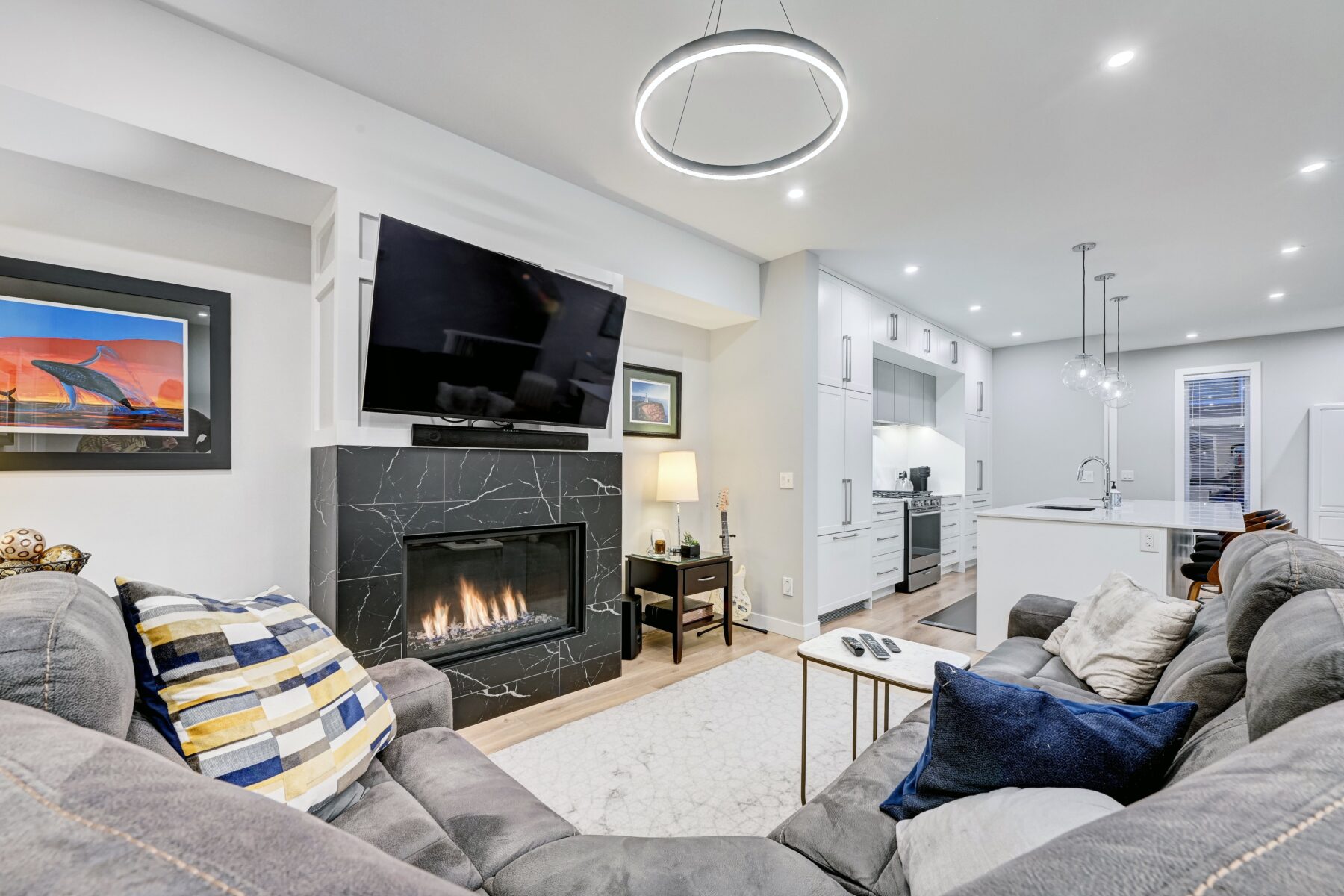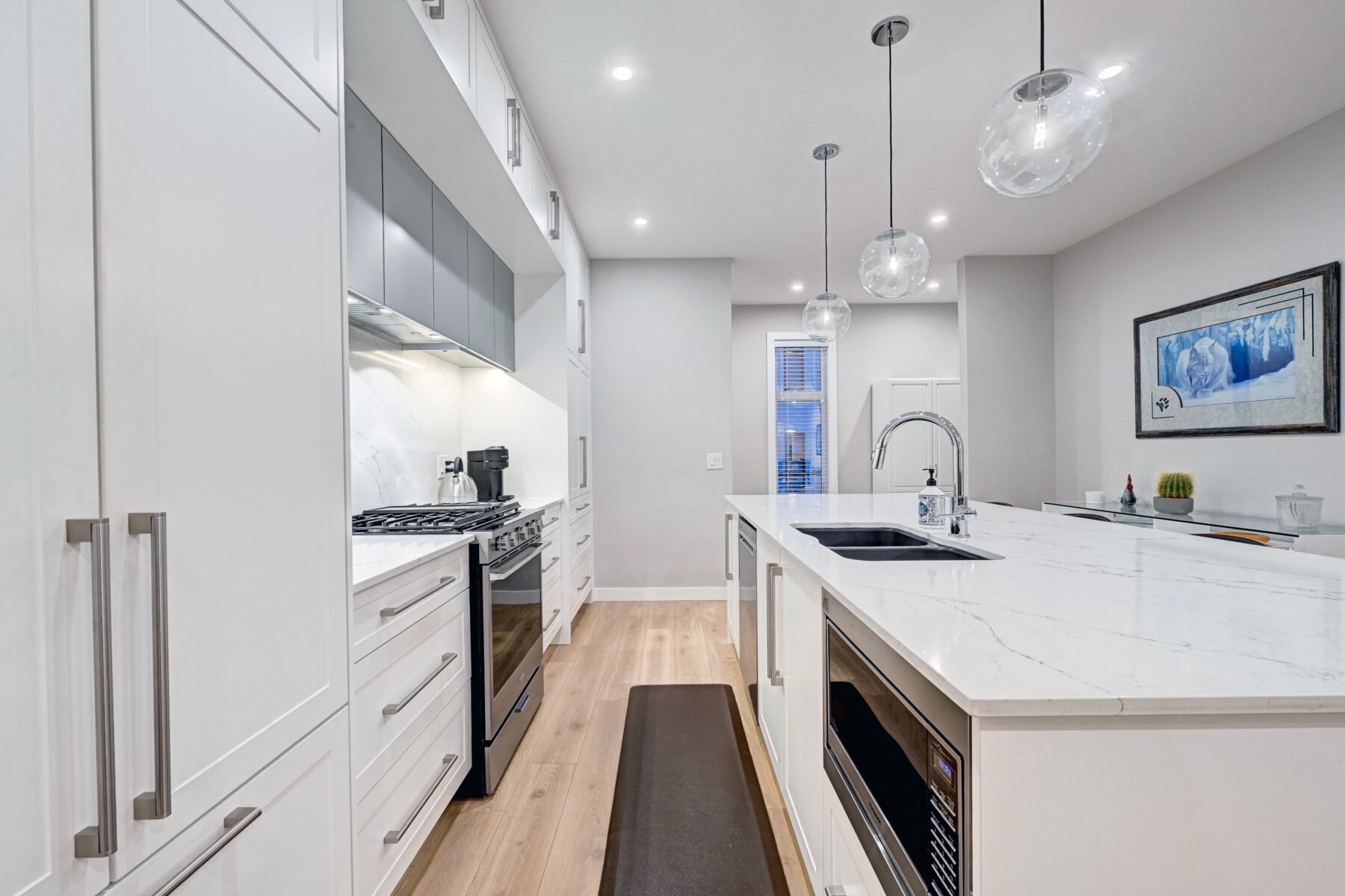 This modern, chic townhome offers 1,768 sq ft of beautifully developed space and is in impeccable condition with a thought fully designed floor plan and 9-ft ceilings on both the main and upper levels. The main floor is bright and wide open, highlighted by an expansive kitchen with a gas range, built-in fridge, and quartz countertops, flowing seamlessly into comfortable dining and living areas. Step outside to a spacious deck complete with a gas BBQ outlet—perfect for entertaining. Upstairs, you’ll find three generously sized bedrooms, including a primary retreat with a large walk-in shower and double sinks, plus the convenience of upper-floor laundry. The lower level adds valuable flexibility with an additional room ideal for a gym or home office. The double attached garage is insulated, heated, and finished with an epoxy floor, with all shelving included. This is also one of the rare units in the complex equipped with air conditioning. Located in West District—a vibrant and highly walkable community with a growing list of amenities, this home offers exceptional convenience. Enjoy nearby parks, including a dog park, walking paths, and quick access to Stoney Trail and Bow Trail for an easy commute anywhere in the city. Truly an exceptional home that is expected to sell quickly.